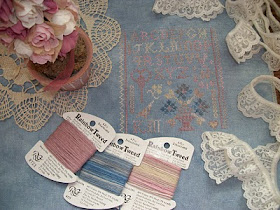 Here's one of Carol's charts at http://istitchcharts.blogspot.com/ , it's called Sew The Sampler Guild. I stitched it with a new to me thread called Rainbow Tweed. I believe it is mostly used for needlepoint, but when I tried it, it was really nice to stitch with, and I like the way it looks.